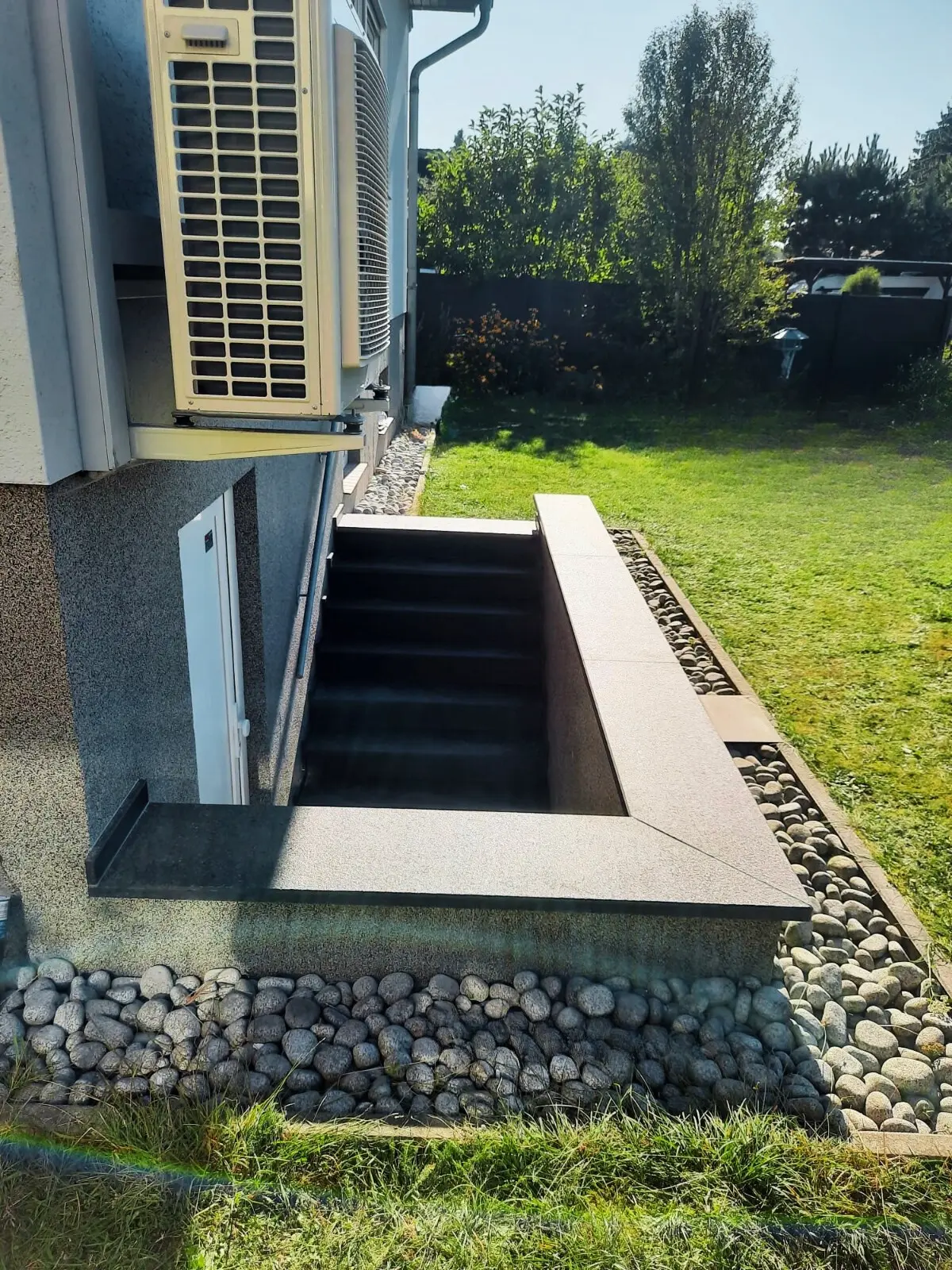 Die Kellertreppen aus Granit sind besonders widerstandsfähig gegenüber Witterungseinflüssen und bieten eine rutschfeste Oberfläche. Diese Treppen sind überwiegend geschlossene Modelle, was bedeutet, dass sie aus Trittstufen und Setzstufen bestehen, sodass man nicht hindurchsehen kann. Sie sind auf eine stabile Unterkonstruktion montiert und bieten so maximalen Halt und Langlebigkeit.