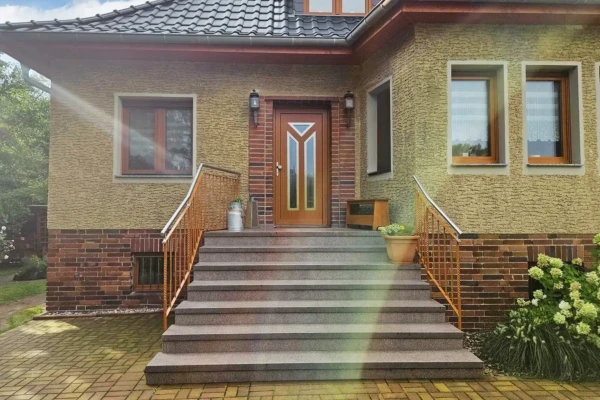 Die Trittstufen haben eine Stärke von 3 cm und die Setzstufen 2 cm. Beide Elemente sind präzise gefertigt und miteinander verbunden, um eine harmonische, gleichmäßige Optik zu gewährleisten. Dank der Vielfalt an Farbmustern passen sie perfekt zu jedem Hausstil.