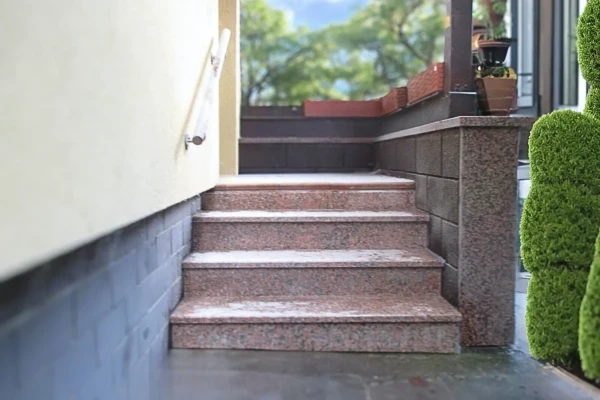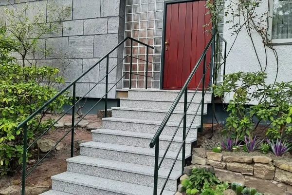 Unsere Tritt- und Setzstufen bestehen aus robustem, frost- und rutschsicherem Granit, der in 7 verschiedenen Farbmustern erhältlich ist. Für den Unterbau setzen wir in der Regel auf einen Styrodurkörper auf einem feuerverzinkten Rahmen, wenn keine Betonunterkonstruktion vorhanden ist. Diese leichte Bauweise ist flexibel und ermöglicht es uns, nahezu jede gewünschte Form umzusetzen.