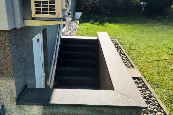 Die Kellertreppen aus Granit sind besonders widerstandsfähig gegenüber Witterungseinflüssen und bieten eine rutschfeste Oberfläche. Diese Treppen sind überwiegend geschlossene Modelle, was bedeutet, dass sie aus Trittstufen und Setzstufen bestehen, sodass man nicht hindurchsehen kann. Sie sind auf eine stabile Unterkonstruktion montiert und bieten so maximalen Halt und Langlebigkeit.