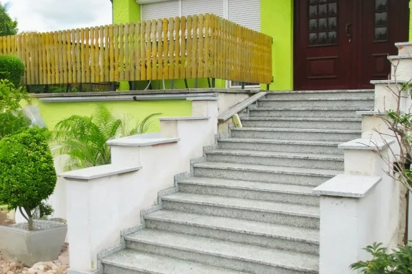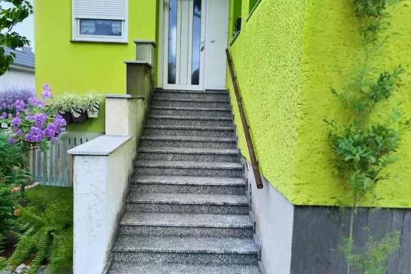 Unsere Tritt- und Setzstufen bestehen aus robustem, frost- und rutschsicherem Granit, der in 7 verschiedenen Farbmustern erhältlich ist. Für den Unterbau setzen wir in der Regel auf einen Styrodurkörper auf einem feuerverzinkten Rahmen, wenn keine Betonunterkonstruktion vorhanden ist. Diese leichte Bauweise ist flexibel und ermöglicht es uns, nahezu jede gewünschte Form umzusetzen.